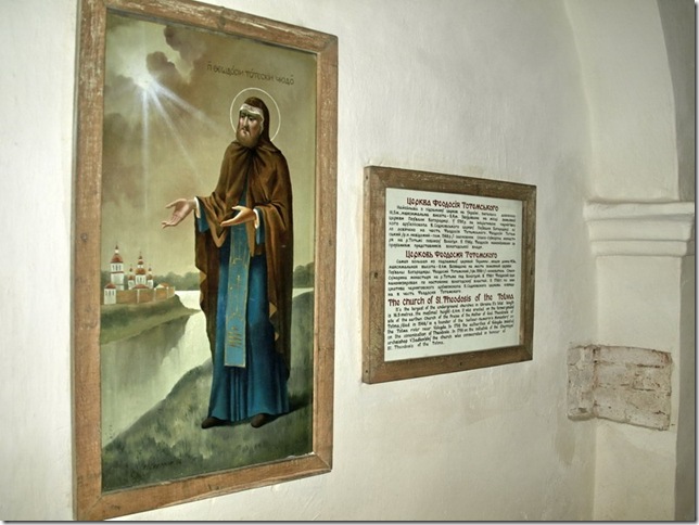 Подземный храм был освящён в честь основателя Спасо-Суморина монастыря под Вологдой — Феодосия Тотемского
