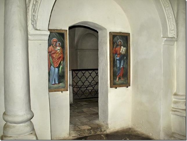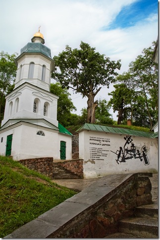 У этого небольшого храма на территории Антониевых пещер есть даже своя часовенка с гробницей, в которой, если верить сказаниям, похоронены останки монахов, сгинувших в 1239 году во время набега монголо-татарского ига